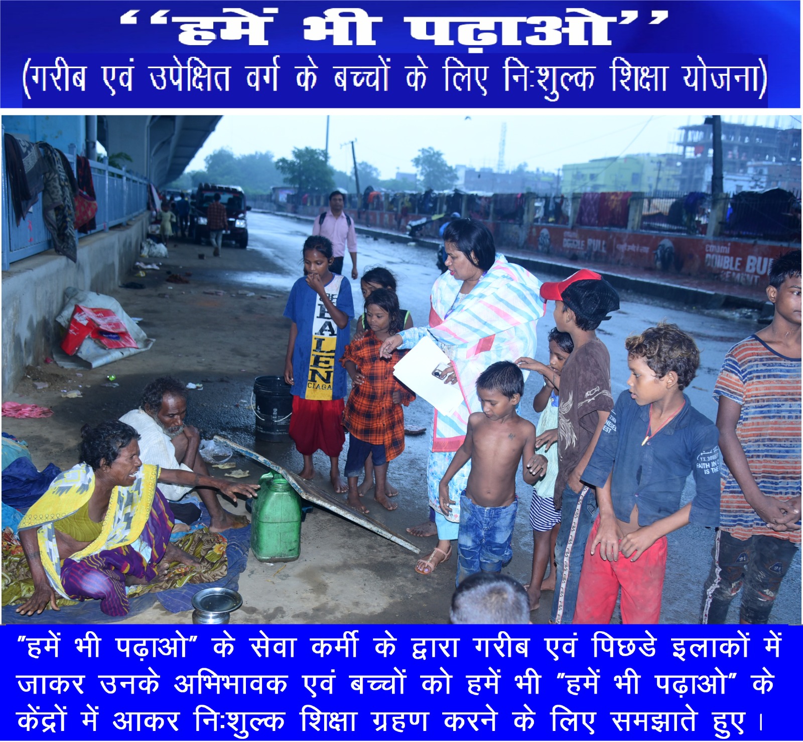 "हमें भी पढ़ाओ" के द्वारा इनके स्वास्थ्य परीक्षण हेतु नियमित निःशुल्क चिकित्सा शिविर, मानसिक एवं चारित्रिक उत्थान हेतु योग प्रशिक्षण शिविर तथा शैक्षणिक भ्रमण का आयोजन किया जाता है l केंद्र के सफल परीक्षण का ही परिणाम हैं की जो बच्चें शुद्ध रूप से अपना नाम पता नहीं बोल पाते थे, वे ही आज सड़कों प् विभिन्न तरह के कार्यक्रमों जैसे नुक्कड़ नाटक, बाढ़ पीड़ितों के लिए सहायता सामग्री संग्रह, जागरूकता रैली इत्यादि का आयोजन करने लगें है l