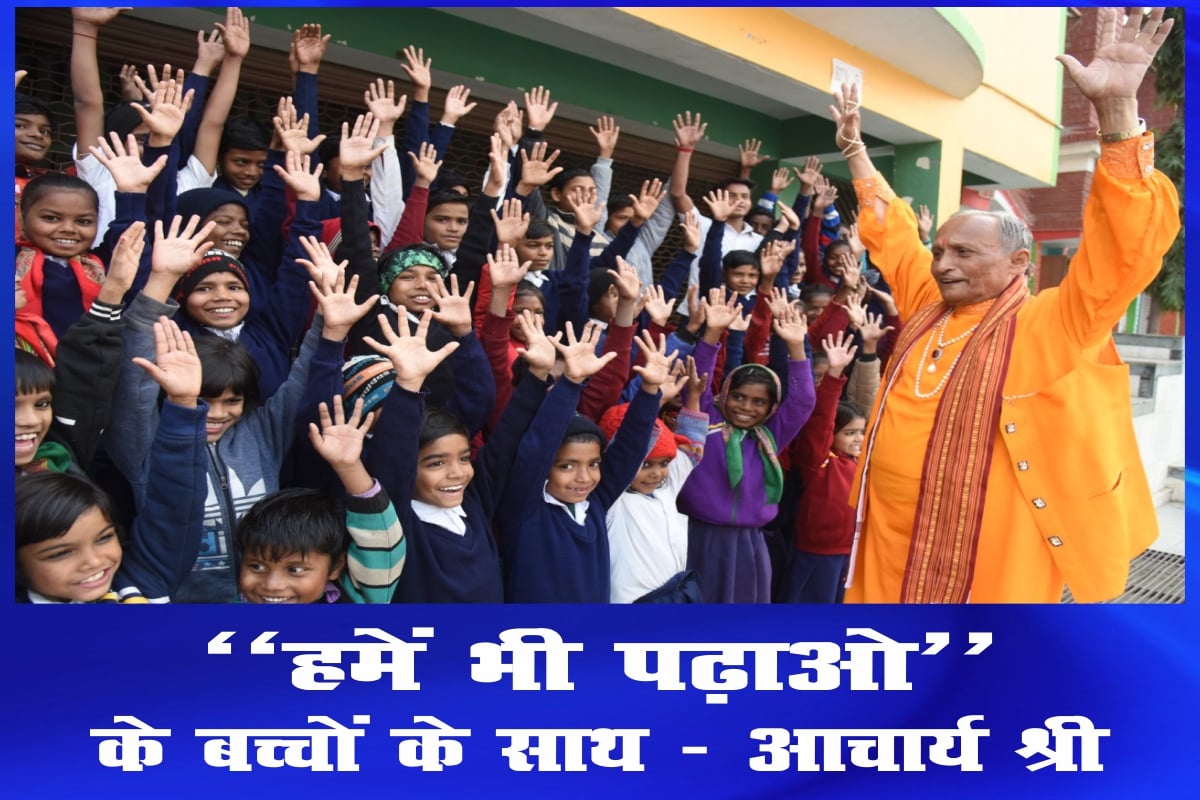 "हमें भी पढ़ाओ" कार्यक्रम के इस छोटे से पौधे की नीव जगजीवन नगर, चितकोहरा में पड़ी थी, जिसे आज आचार्यश्री के आशीर्वाद एवं फाउंडेशन के निदेशक श्री बी० के० सुदर्शन व संस्था के सचिव डॉ० कुमार अरुणोदय ने अपनी लगन एवं मेहनत से सींच कर वटवृक्ष बना दिया हैं और जिसकी शाखाएं निरंतर बढ़ती हुईं बिहार ही नहीं बल्कि झारखण्ड, उत्तरांचल, हरियाणा, दिल्ली आदि प्रदेशों में फैलती जा रही है I इस वटवृक्ष की छाया तलें हज़ारों बेसहारा, अशिक्षित एवं बेराजगार बच्चें लाभान्वित हो रहें है I कल तक अशिक्षा के अंधकार में भटकते ये बच्चें समाज के लिए अभिशाप थे लेकिन आज यही बच्चें केंद्र से शिक्षा ग्रहण कर समाज की मुख्य धारा से जुड़ते जा रहे है I l